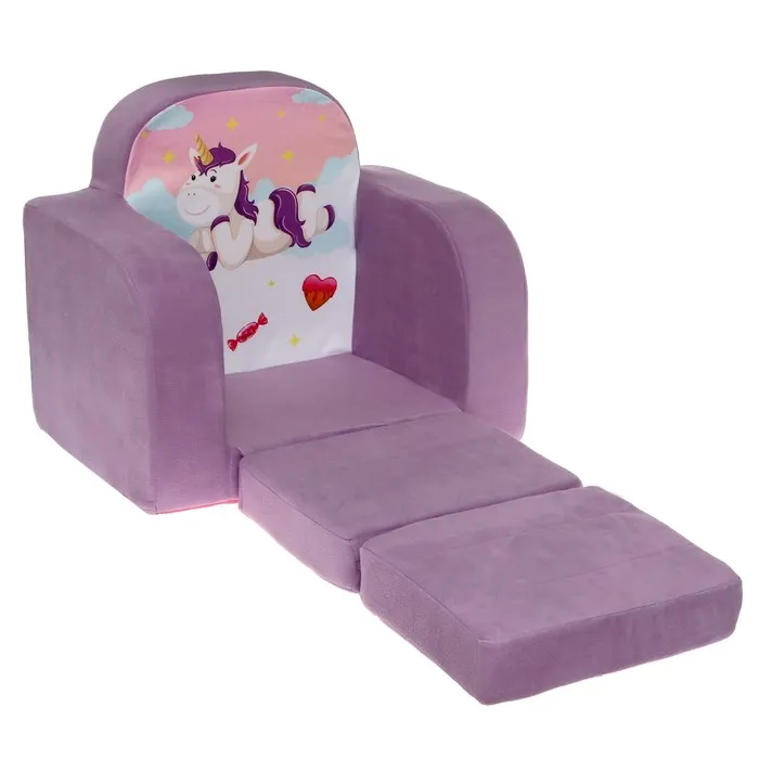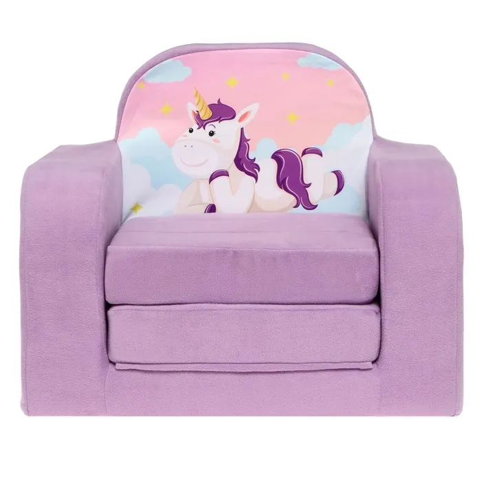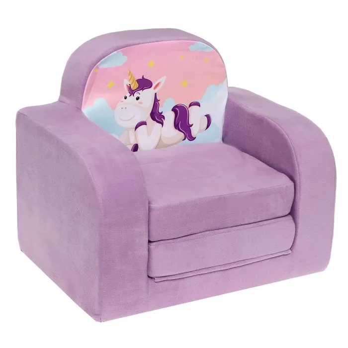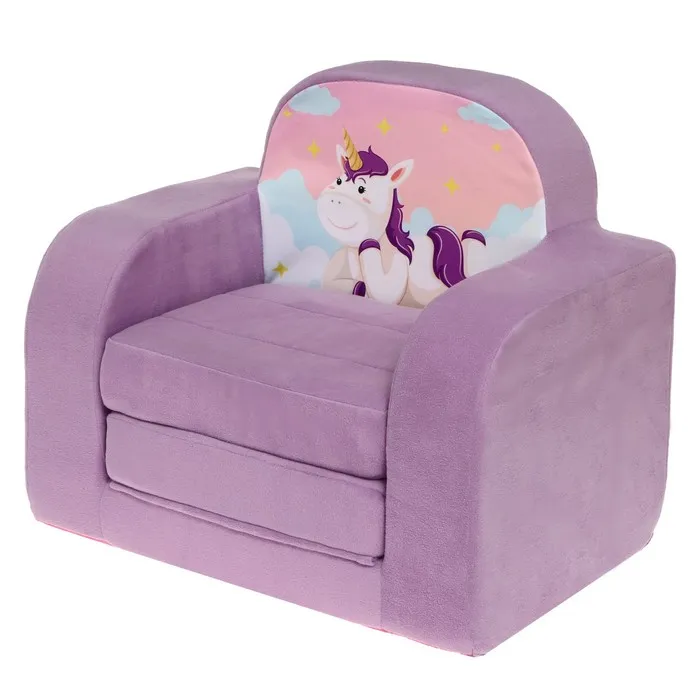Раскладное кресло «Единорог» — это волшебный аксессуар, который добавляет уюта и радости в детскую комнату. Его мягкий материал и удобная конструкция делают его идеальным выбором для игр, отдыха или как стильное украшение интерьера.