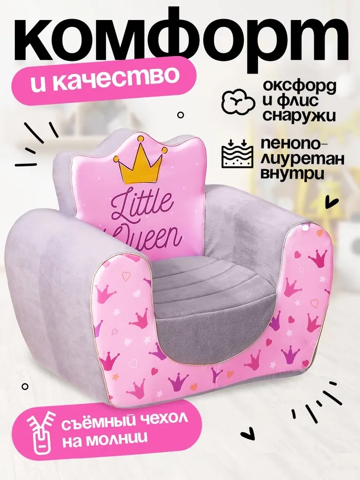 Удобное мягкое кресло подойдёт для чтения книг, игр и просмотра мультиков.