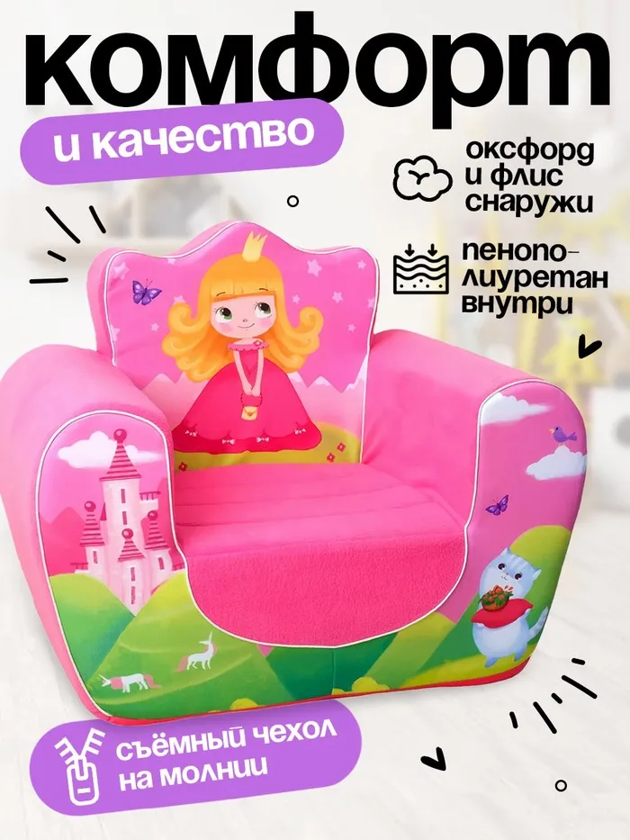 Удобное мягкое кресло подойдёт для чтения книг, игр и просмотра мультиков.