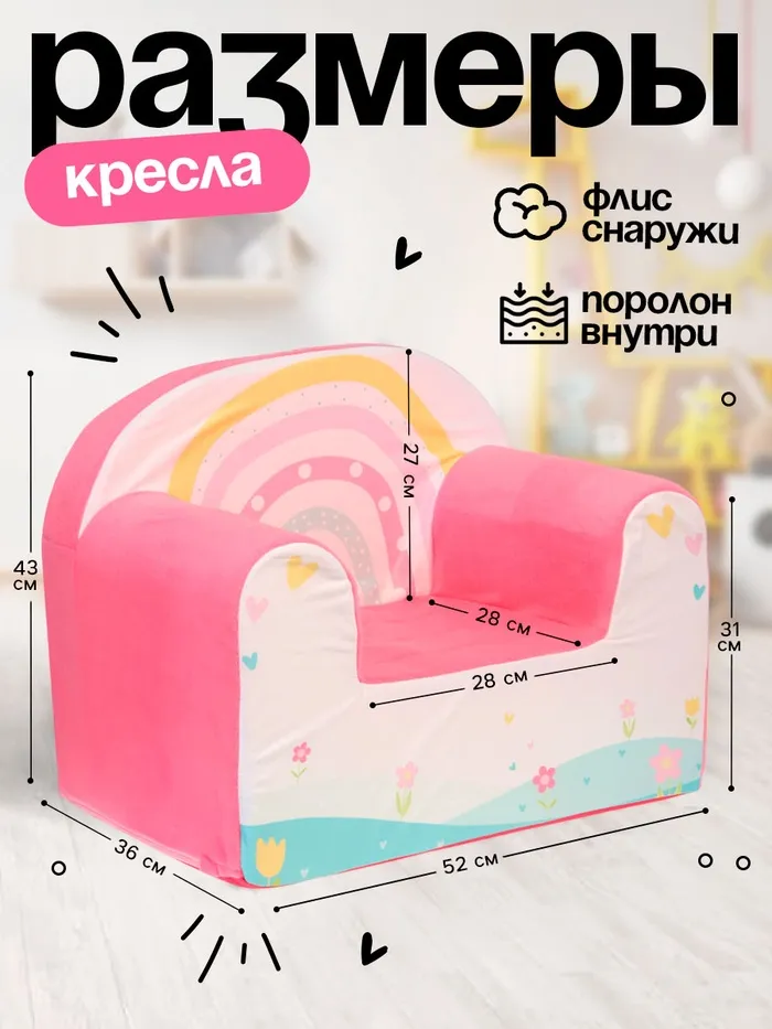 Это кресло станет прекрасным дополнением комнаты вашего ребёнка. Оно не только добавляет уюта, но и становится любимым местом для чтения книг, игр или отдыха. Дизайн делает его подходящим для детского интерьера, а мягкая текстура создаёт атмосферу заботы и тепла.