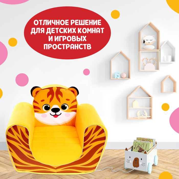 Мягкое кресло «Тигрёнок» — это уютный аксессуар, который добавляет комфорта и очарования в детскую комнату. Его компактные размеры и мягкий материал делают его идеальным выбором для игр, отдыха или как стильный элемент интерьера.