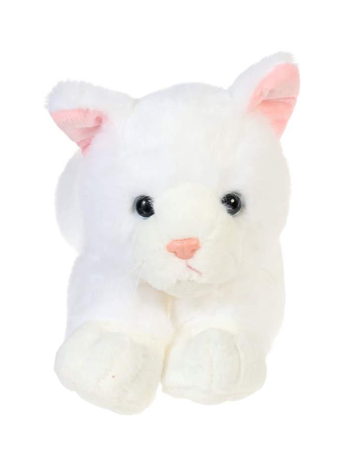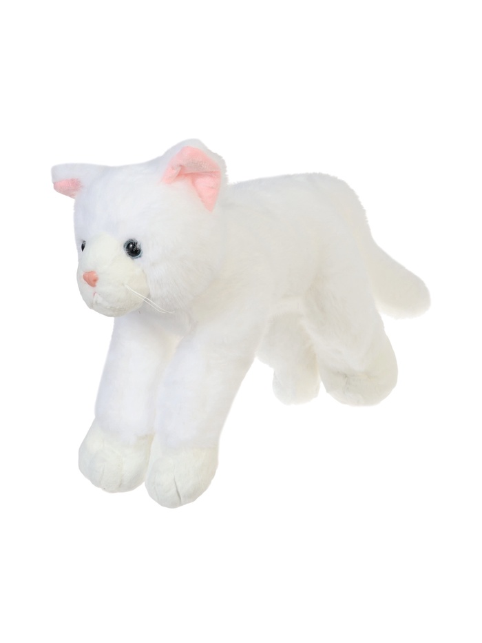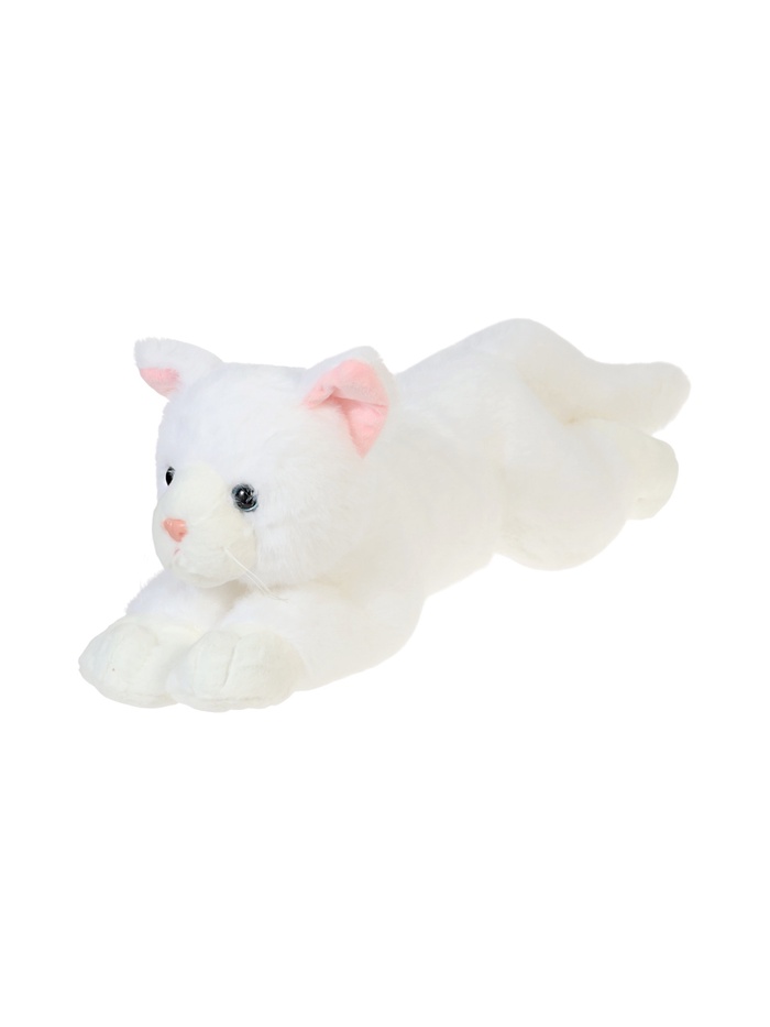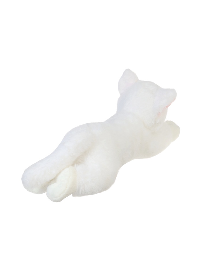 - Игрушка выполнена в виде лежащего котика с мягким и гладким плюшем.