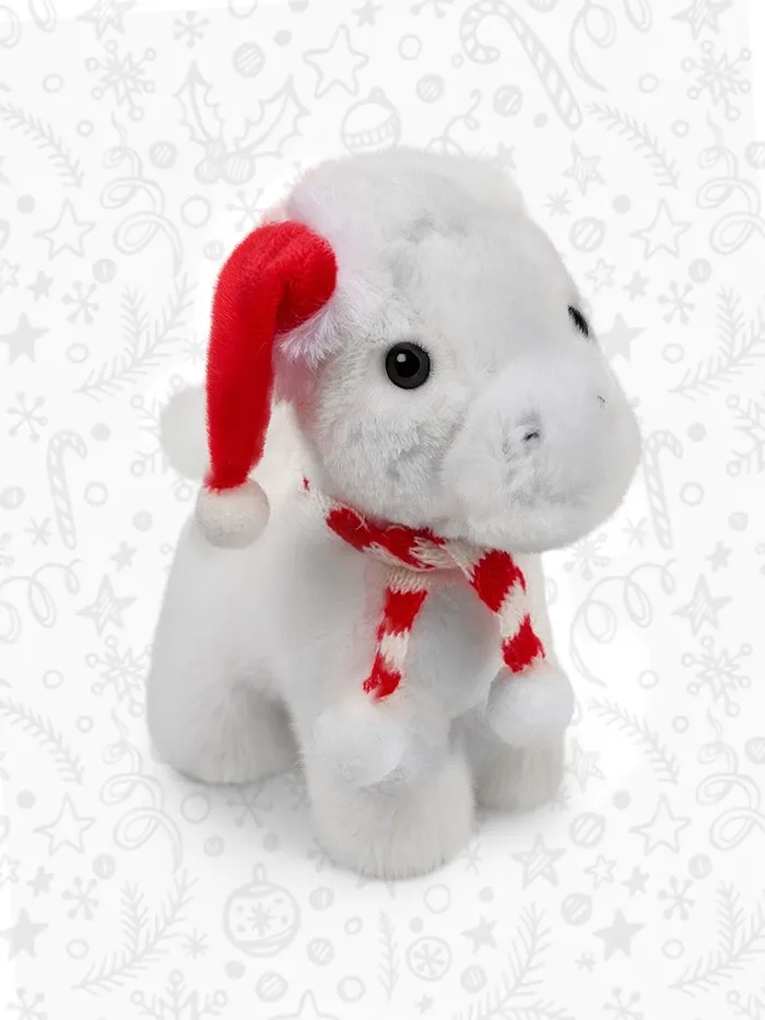Мягкая лошадка в новогодней шапочке — это очаровательный аксессуар, который добавит тепла и уюта в любой дом. Её белый цвет и милый дизайн делают её идеальным выбором для игр, украшения интерьера или подарка для особого случая. Эта мягкая игрушка станет любимым другом как для детей, так и для взрослых.