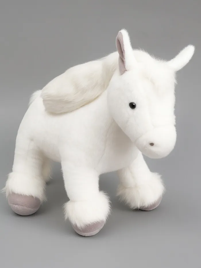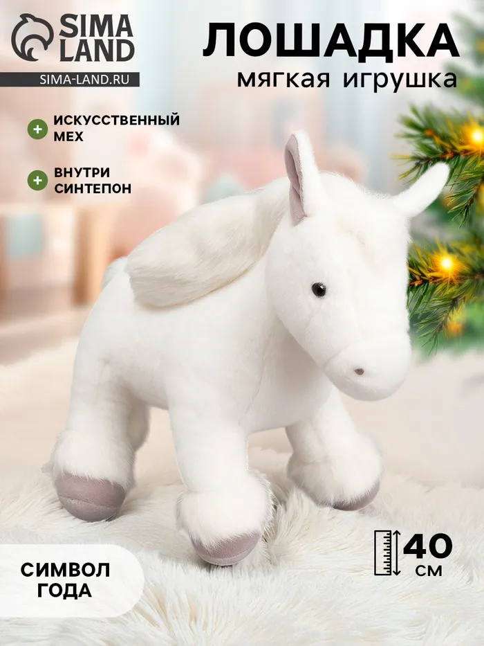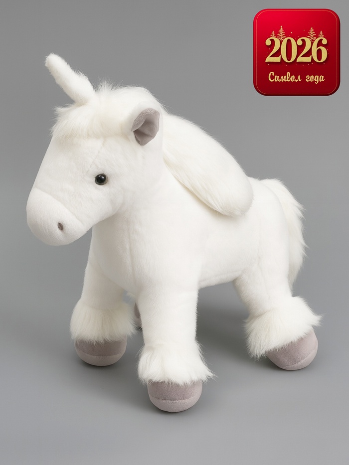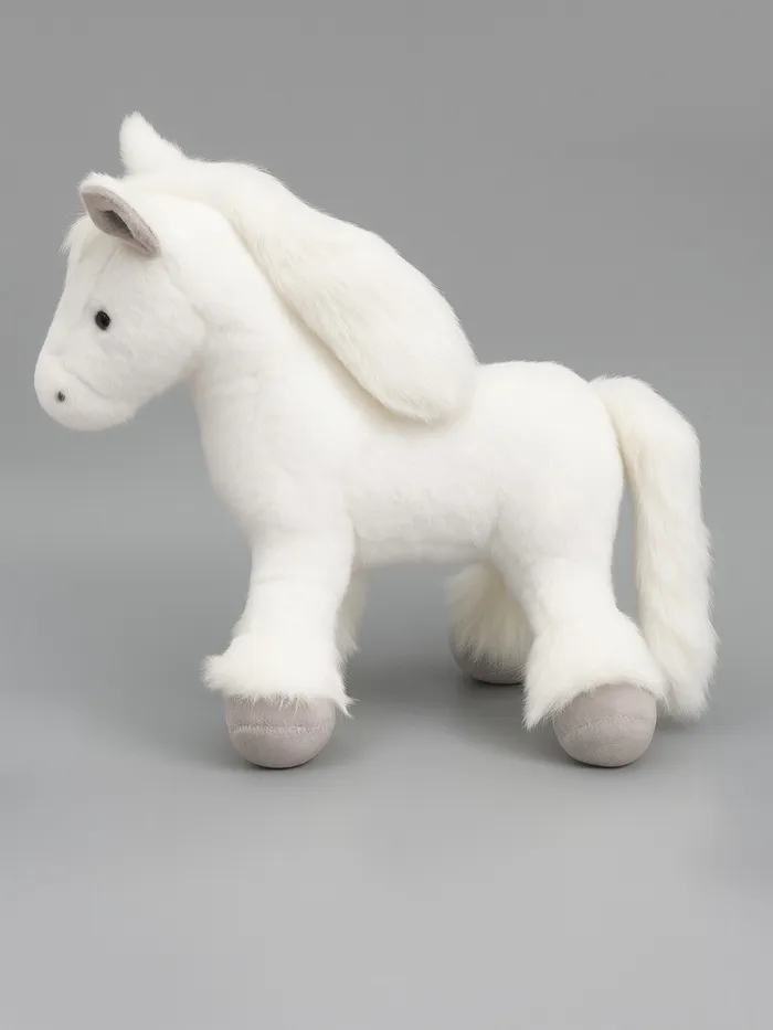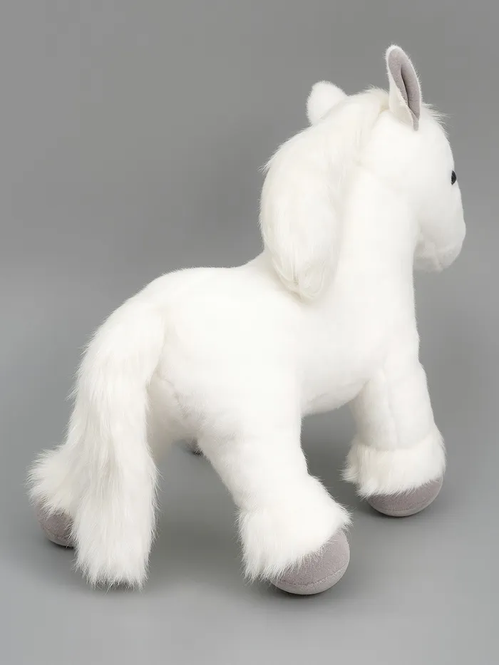 Мягкая белая лошадка — это очаровательный аксессуар, который добавит уюта и тепла в любой дом. Её компактный размер делает её идеальной для детской комнаты, офиса или даже путешествий. Эта игрушка станет верным другом для ребёнка и стильным декоративным элементом для взрослого.