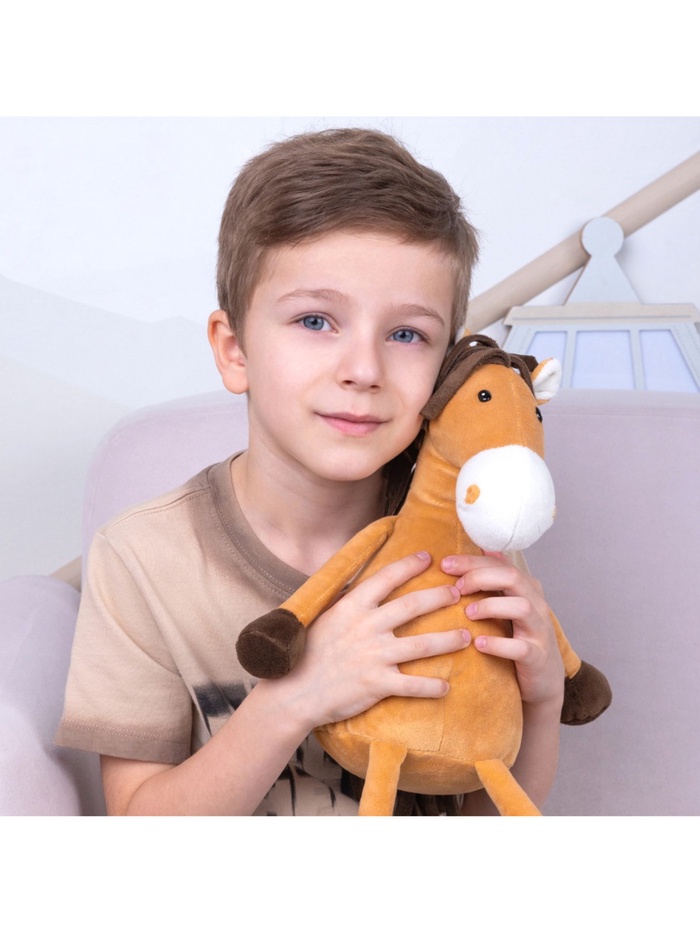 Мягкая лошадка Бусинка — это очаровательный персонаж, который станет любимым другом для вашего ребёнка или стильным аксессуаром в интерьере. Её коричневый мех и добрый образ создают атмосферу тепла и радости, делая её идеальным спутником для игр дома или в качестве декора.
