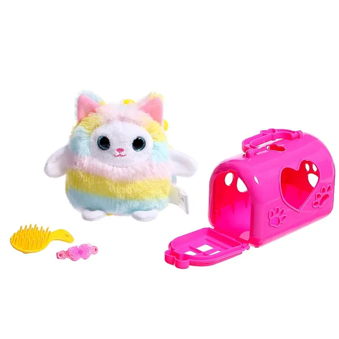 Достаньте пушистика из его домика-переноски. Познакомьтесь с ним поближе. Расчешите шёрстку, сделайте причёску. Дайте соску, покормите его. Узнали, какой питомец вам достался?