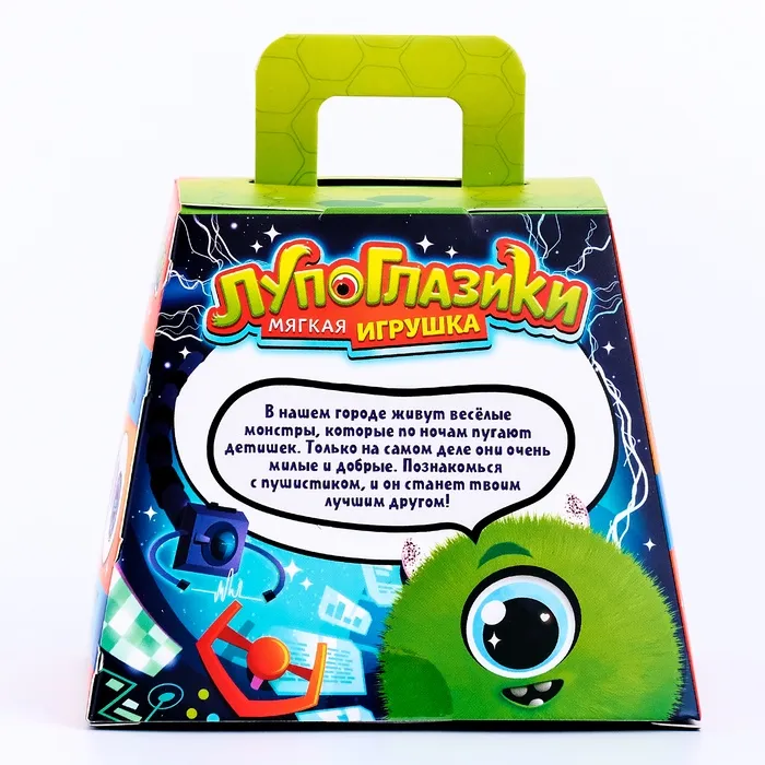 Знакомьтесь — это Глазус. Мягкий зверёк из серии «Лупоглазики. Лига монстров». В набор вместе с ним входят аксессуары, с которыми играть будет ещё интереснее.