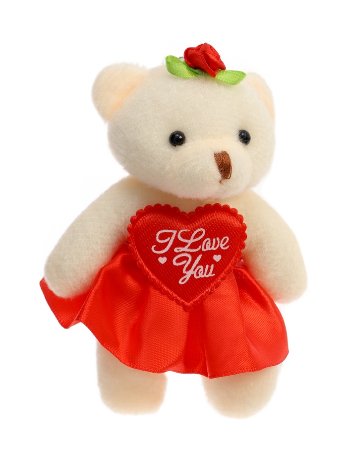Мягкая игрушка «Мишка» — миниатюрный и трогательный сувенир, который дарит настроение с первого взгляда. Маленький медвежонок в ярком платье и с сердечком *I Love You* смотрится особенно нежно и сразу вызывает улыбку. Благодаря миниатюрному размеру его удобно закрепить на упаковке подарка, поставить на рабочий стол или добавить в букет.