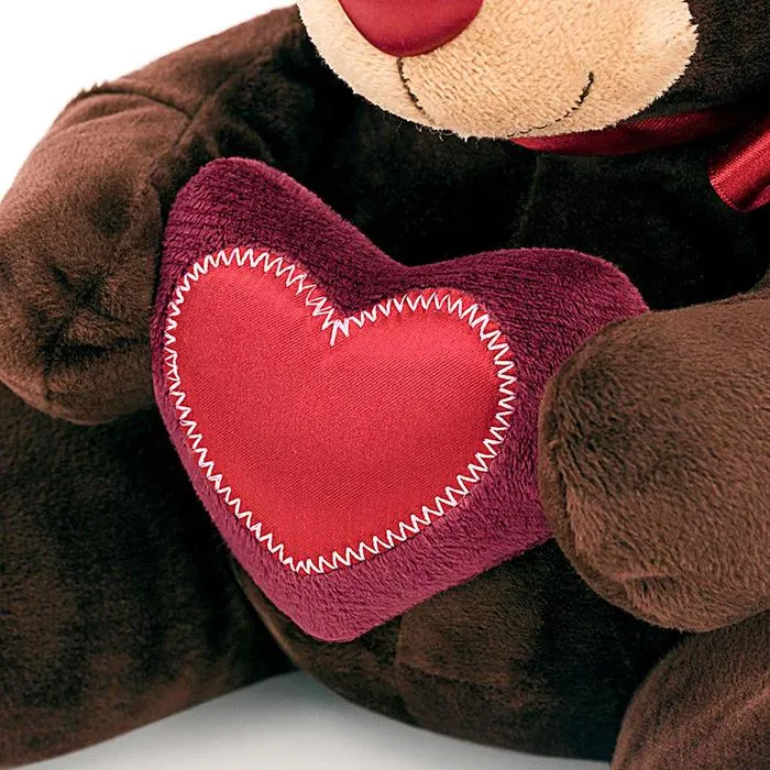 Мишка Choco с красным шёлковым носиком вызывает самые светлые и добрые чувства. Он подарит тепло и уют благодаря мягкому и приятному на ощупь плюшу, из которого сшит. С ним интересно играть и приятно засыпать в обнимку.