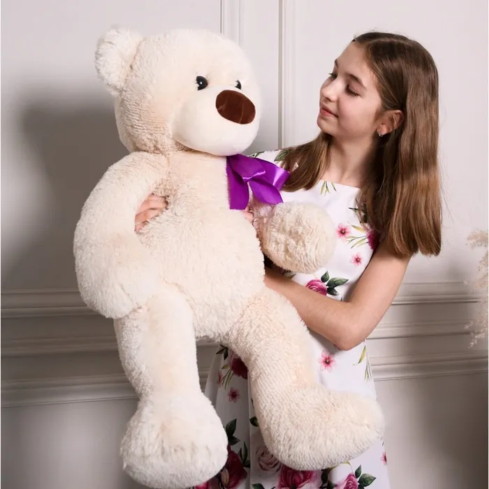 - Игрушка выполнена в виде большого медведя с мягкой и приятной текстурой.