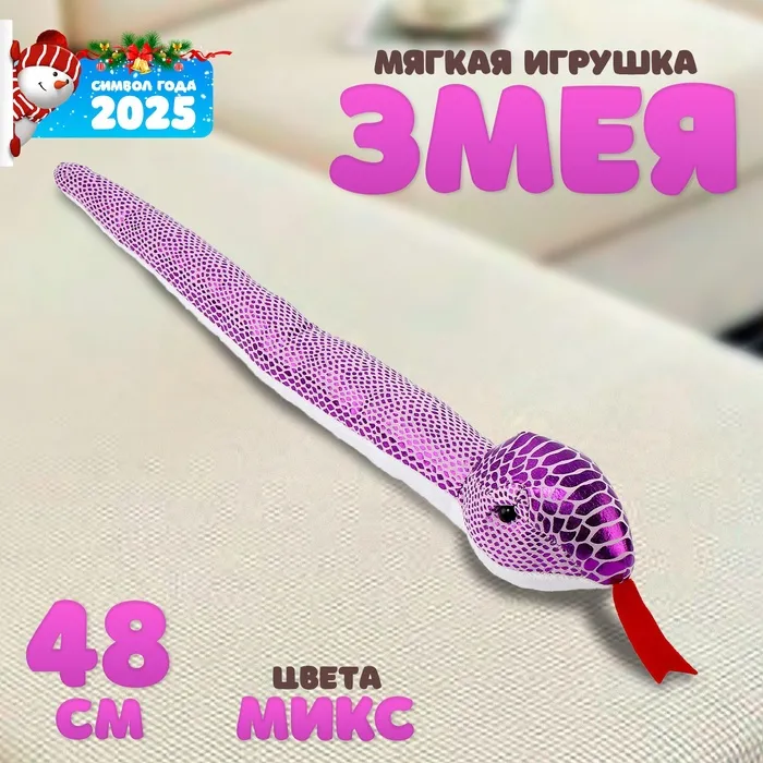 Мягкая игрушка «Змея» блестящая, 48 см, цвет МИКС