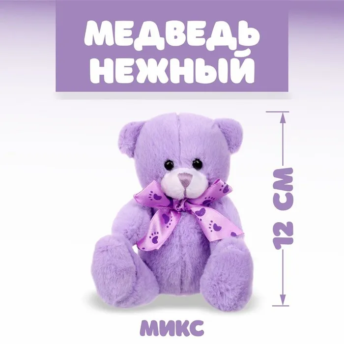 Мягкая игрушка «Медведь нежный», бант, следы, цвета МИКС — Характеристики