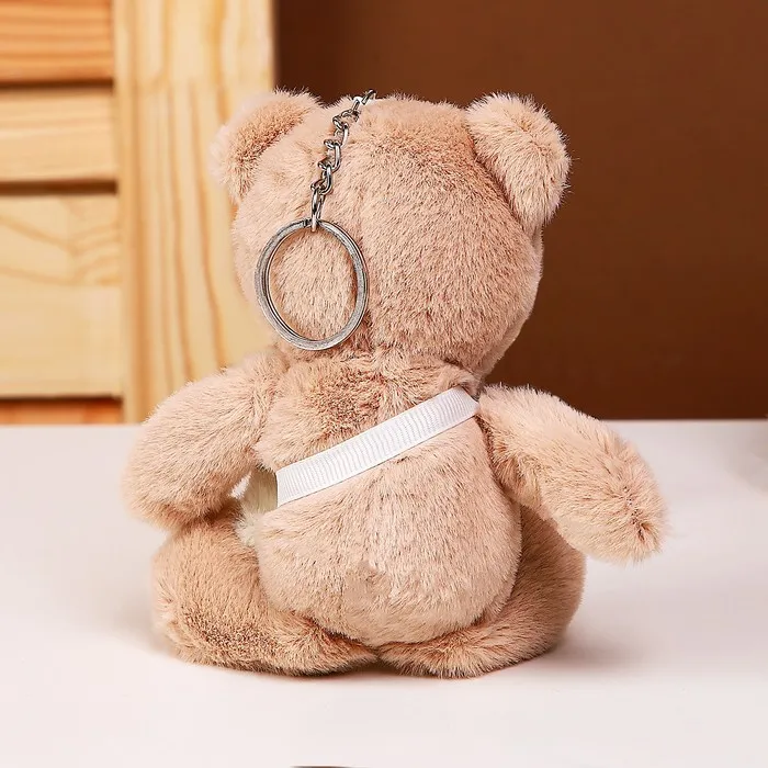 - Брелок выполнен в виде очаровательного медведя с мягким покрытием.