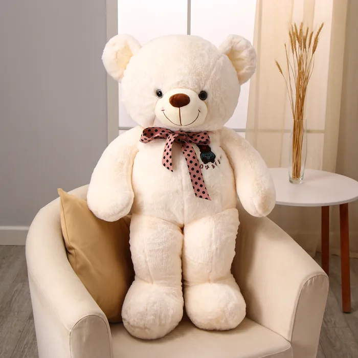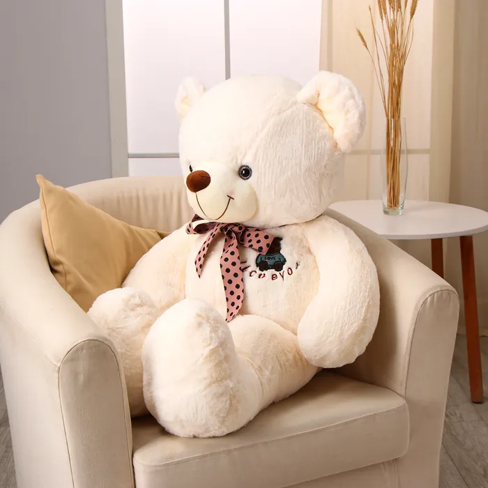 Мягкая игрушка «Мишка», с бантом в горошек, 100 см, цвет белый — Характеристики