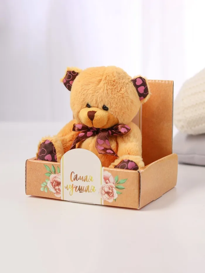 Этот очаровательный мишка вызовет добрые и трепетные чувства у близкого человека. Милый, нежный медвежонок из мягкого, приятного на ощупь материала станет отличным сюрпризом. У него дружелюбное выражение мордочки, мягкие ушки и озорные глазки. Он порадует детей и взрослых.