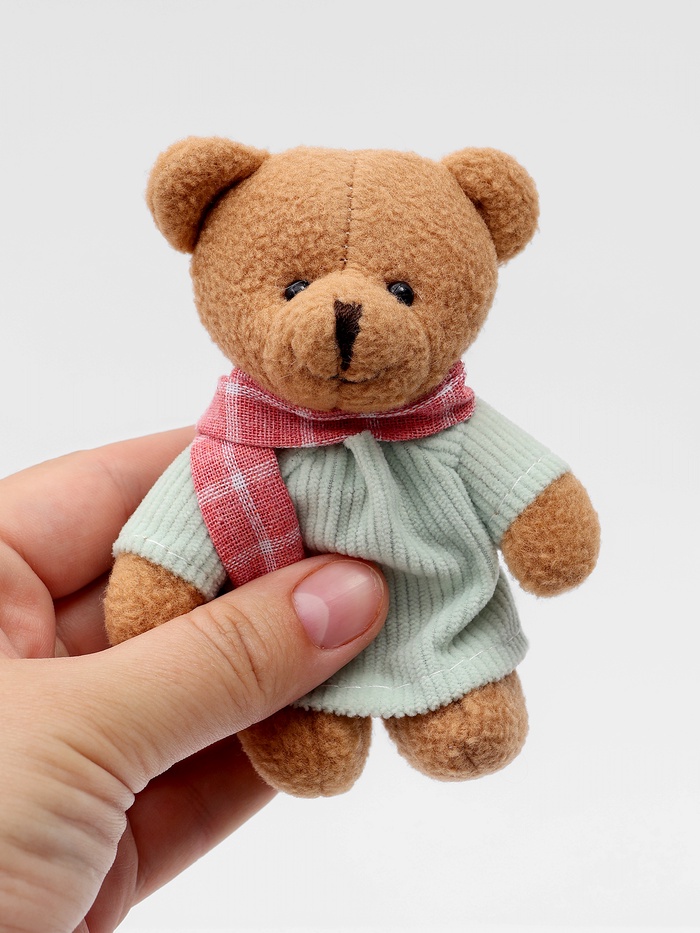 • Игрушка выполнена в виде милого медвежонка с уютным шарфиком, что добавляет ей очарования и индивидуальности.
