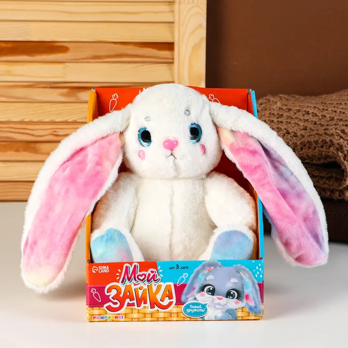 Мягкая игрушка «Мой зайка», цветные ушки, 25 см — Характеристики