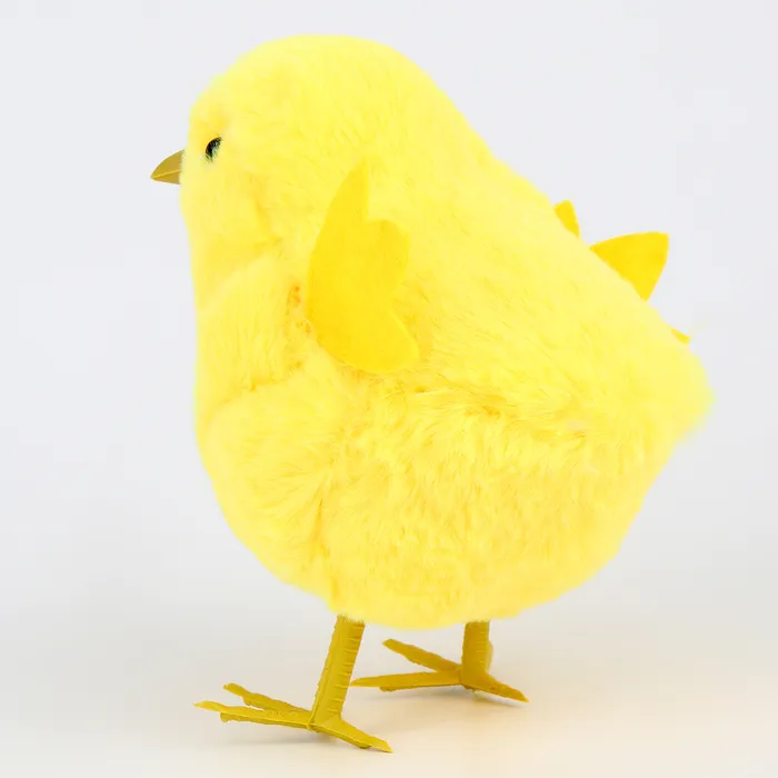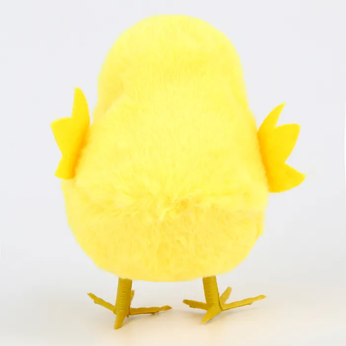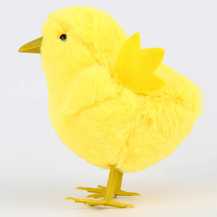 • Тело цыплёнка изготовлено из мягкого на ощупь искусственного меха, а клюв и лапки — из пластика.