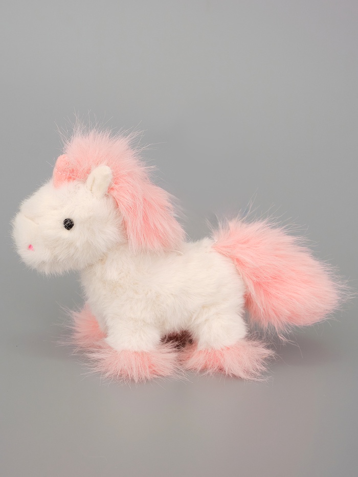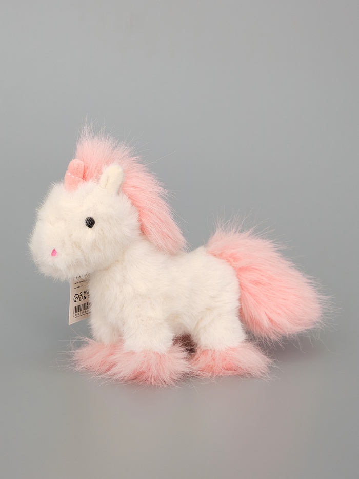 - Игрушка выполнена в виде милого единорога с яркой розовой гривой и хвостом, что добавляет ей игривости и уникальности.