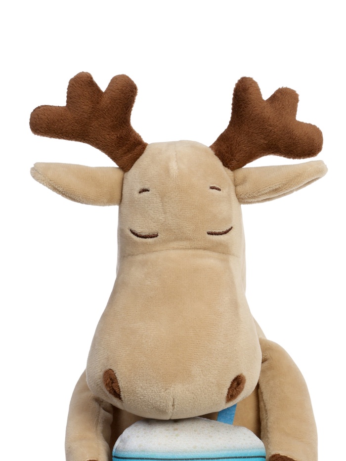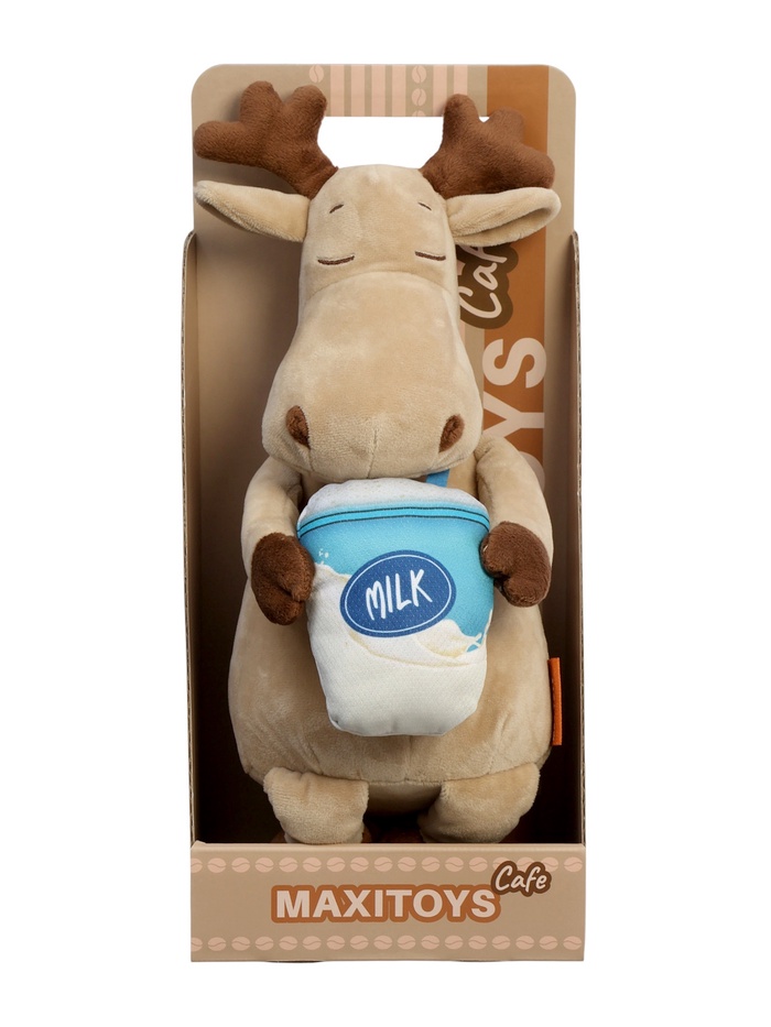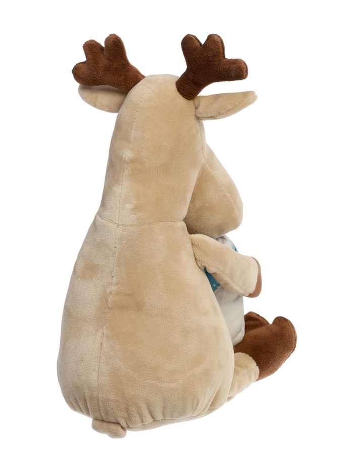 - Игрушка выполнена в виде милого оленя с мягкой текстурой: её искусственный мех приятен на ощупь и добавляет ей особого очарования.