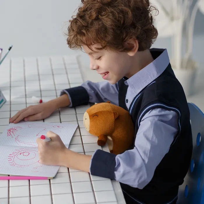 «Капибара Осанчик» — это не просто мягкая игрушка, а настоящий друг, который помогает формировать полезные привычки. В отличие от медицинских корректоров осанки, эта капибара выглядит мило и непринуждённо, снижая сопротивление ребёнка перед контролем за осанкой. Суть её действия заключается в том, чтобы ребёнок или взрослый прижимался к игрушке, тренируя свои мышцы, а не полагался на внешнюю поддержку. Это похоже на «тренера осанки», который всегда рядом и готов помочь.