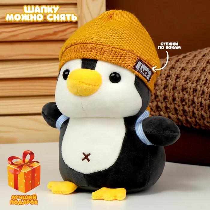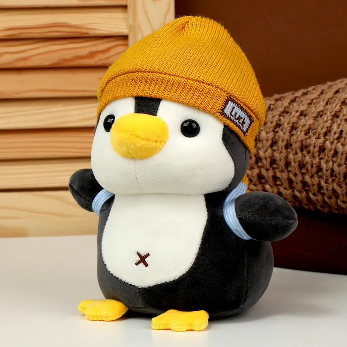 Мягкая игрушка «Пингвин» с рюкзаком, в жёлтой шапке, 22 см — Характеристики