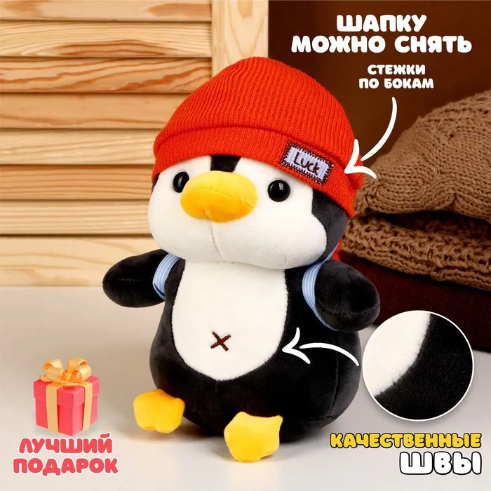 Мягкая игрушка «Пингвин», в шапке, МИКС — Характеристики