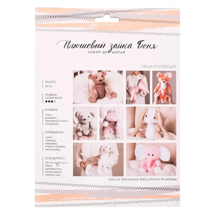 Мягкая игрушка «Плюшевый зайка Боня», набор для шитья, 15,6 × 22,4 × 5,2 см — Характеристики