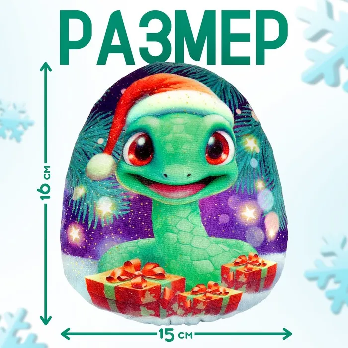 Мягкая игрушка-подушка «Яйцо-змея в шапке с подарками», 16 см — Характеристики