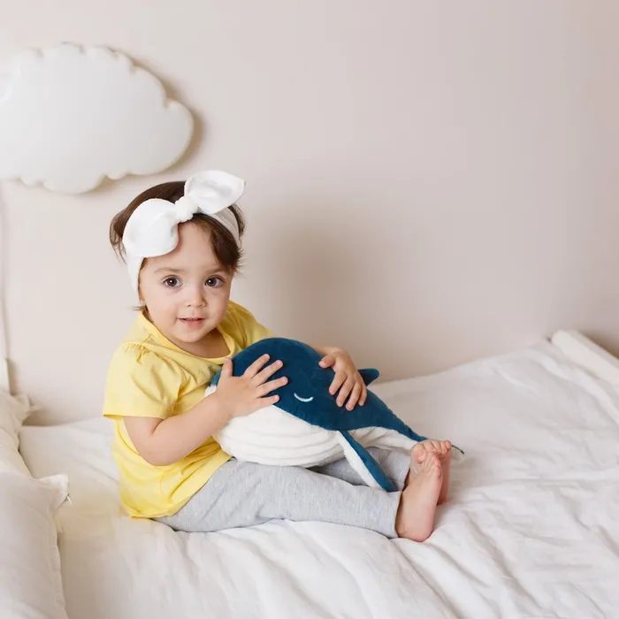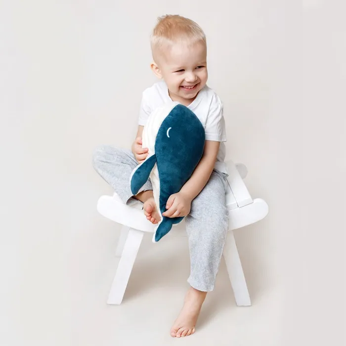 - Игрушка выполнена в виде милого кита, который станет любимым аксессуаром для ребёнка или взрослого.