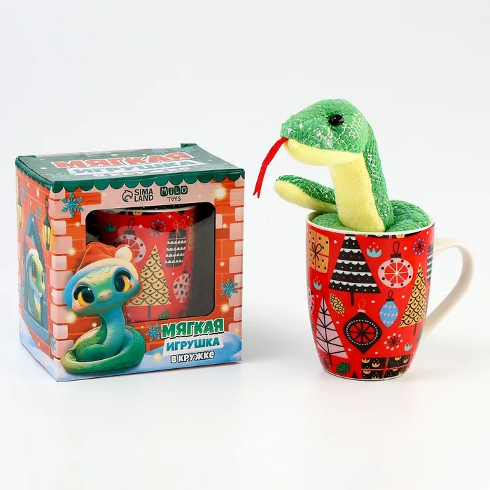 Подарочный набор новогодний «Исполнения желаний»: мягкая игрушка змея и кружка
