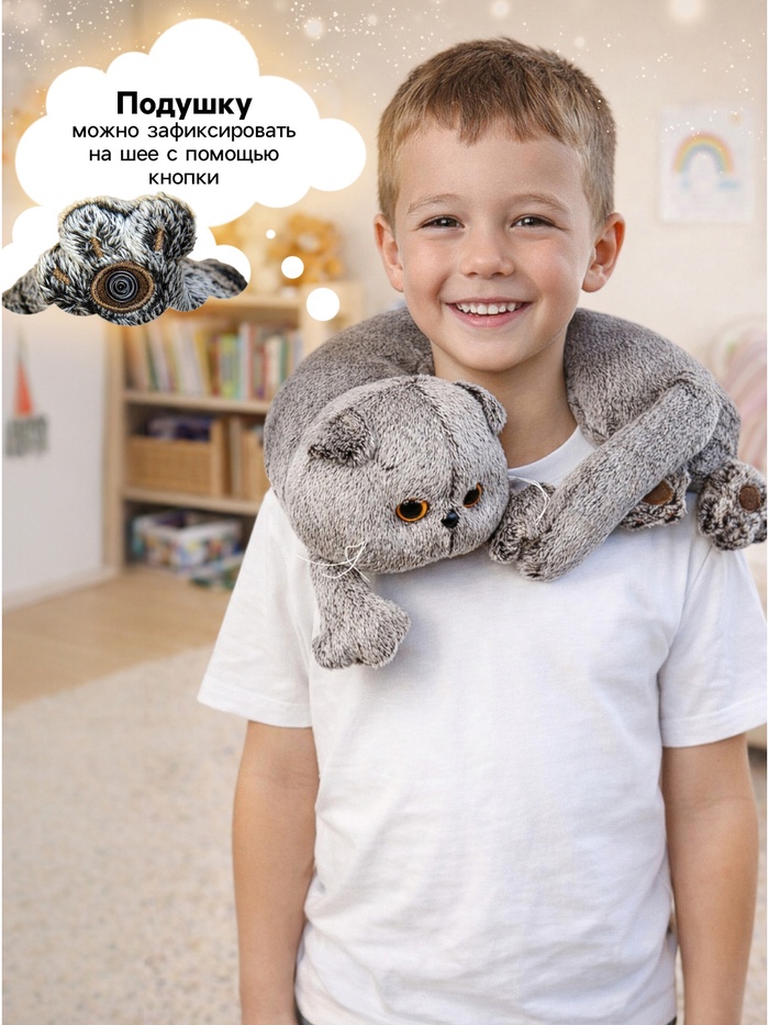Мягкая игрушка-подушка «Кот Басик» — уютный и забавный аксессуар для дома и путешествий. Благодаря своей форме котик может служить как подушкой под шею, так и мягкой игрушкой для отдыха. Басик выполнен из приятного на ощупь материала и станет любимцем детей и взрослых, создавая атмосферу тепла и комфорта.