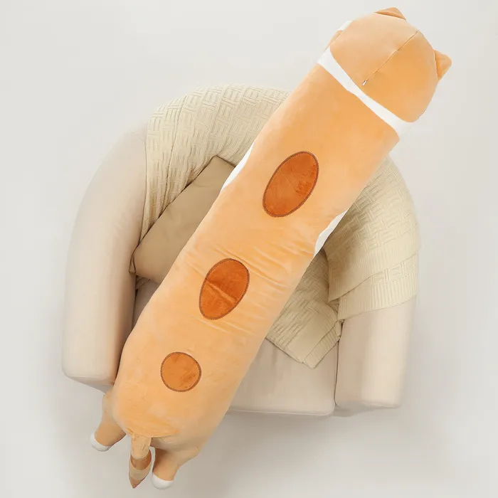 - Игрушка выполнена в виде очаровательного котика, который сочетает в себе функции игрушки и подушки.
