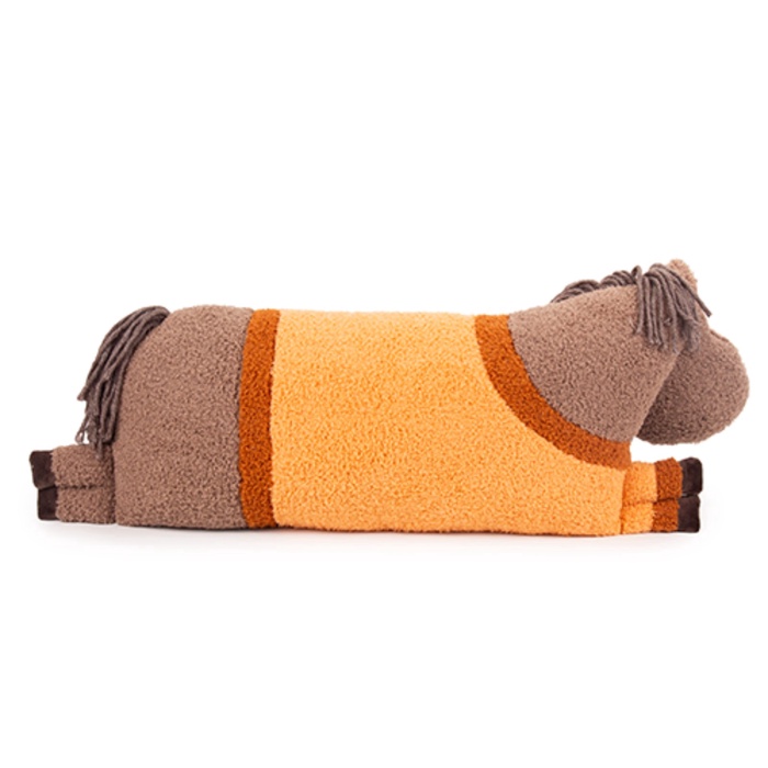 Мягкая лошадка-подушка Нокс — стильная и уютная игрушка, созданная для комфортного отдыха и обнимашек. Тёплые коричнево-оранжевые оттенки придают ей особое очарование, а приятная на ощупь поверхность делает её идеальной для сна, игр и украшения комнаты.
