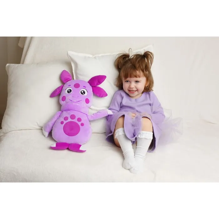 - Игрушка выполнена в виде узнаваемого Лунтика, ставшего символом доброты и радости.