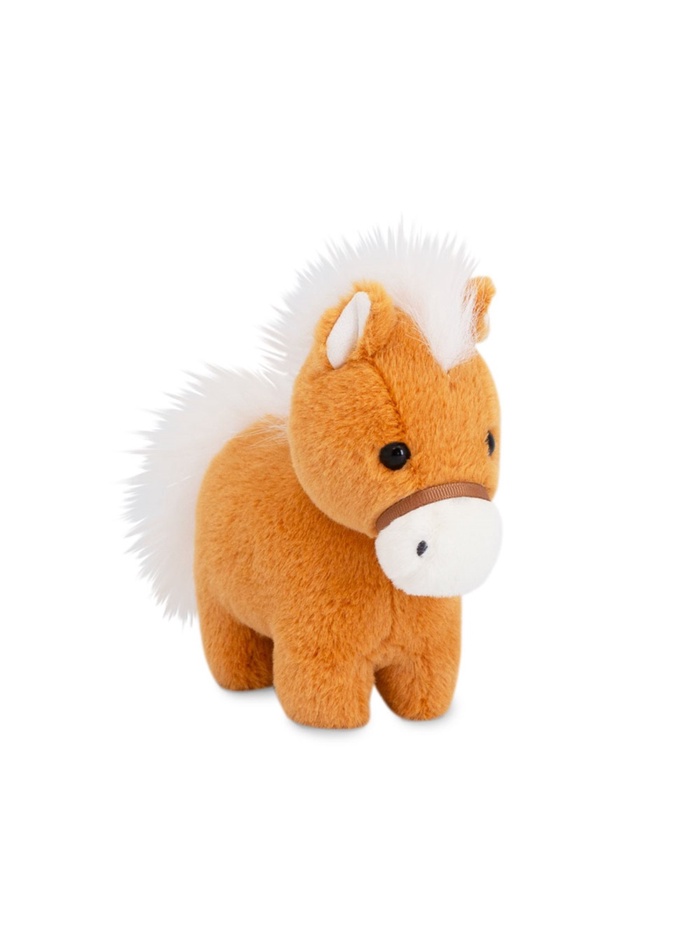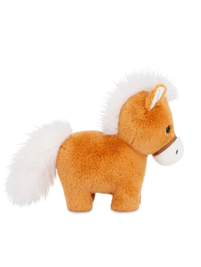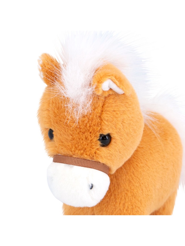 • Игрушка выполнена в виде милого пони с мягкой текстурой, белоснежной гривой и хвостом, которые красиво контрастируют с ярко-рыжей шерстью.