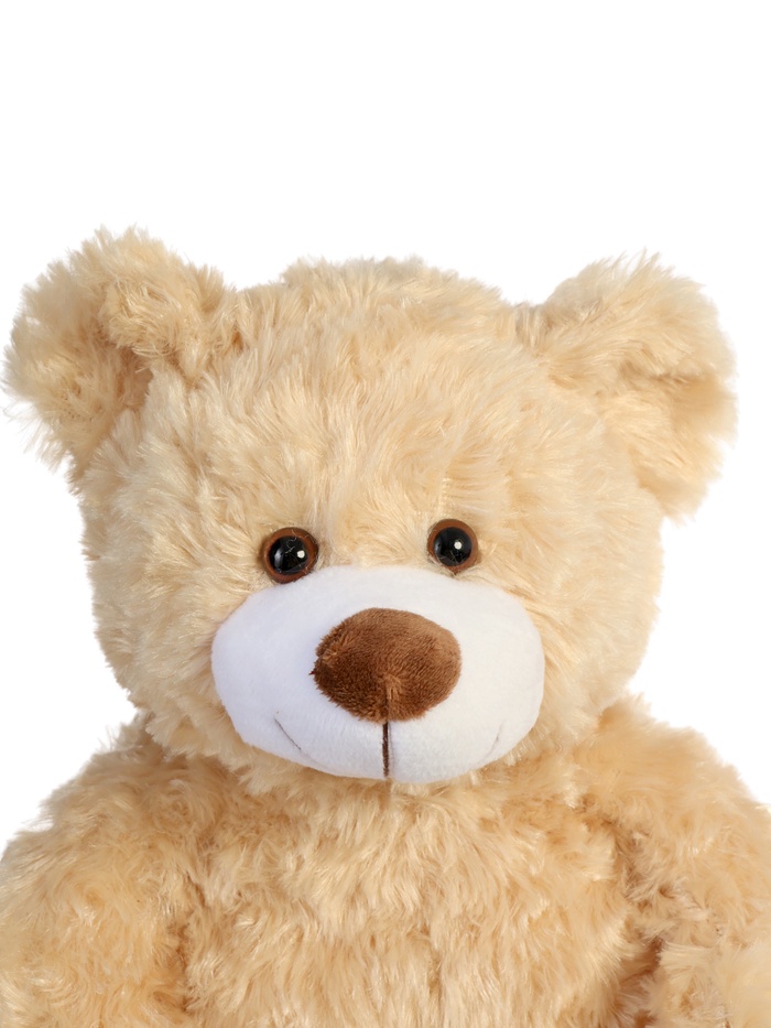 - Пушистая фактура делает мишку особенно уютным и приятным для объятий.