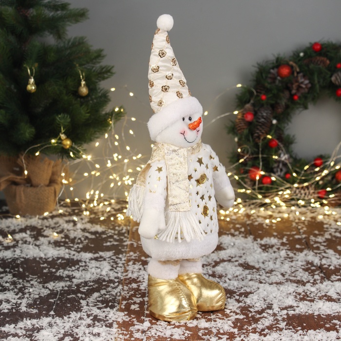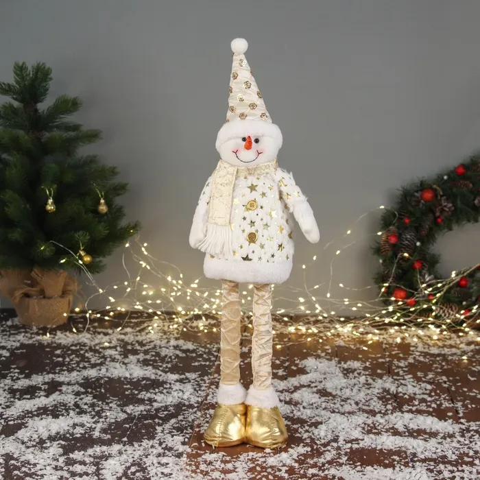 Мягкая игрушка "Снеговик звёзды" (59х21 см выдвинутые ножки) 40х21 см, золотисто-белый — Характеристики