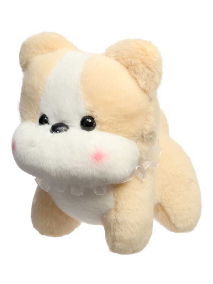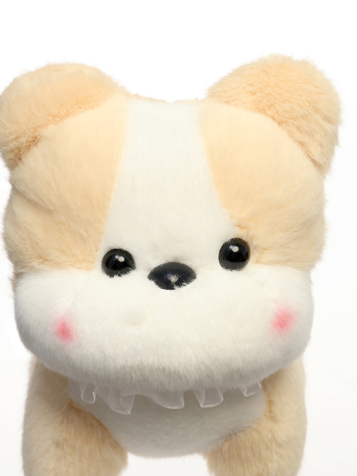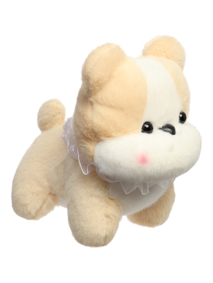 Игрушка приятно ложится в руки, не имеет жёстких элементов и подходит как для активных игр, так и для тихих моментов отдыха. Небольшой декоративный элемент в виде лёгкой оборки добавляет образу аккуратности и делает собачку особенно милой.