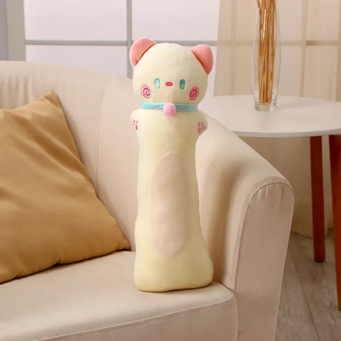 Корпус игрушки достаточно плотный, чтобы сохранять форму, но при этом остаётся удобным для держания в руках. За счёт продуманного дизайна собачку можно разместить на кровати, полке или рядом на диване — она смотрится аккуратно и декоративно.