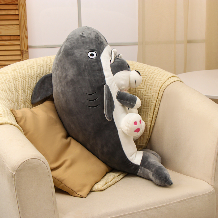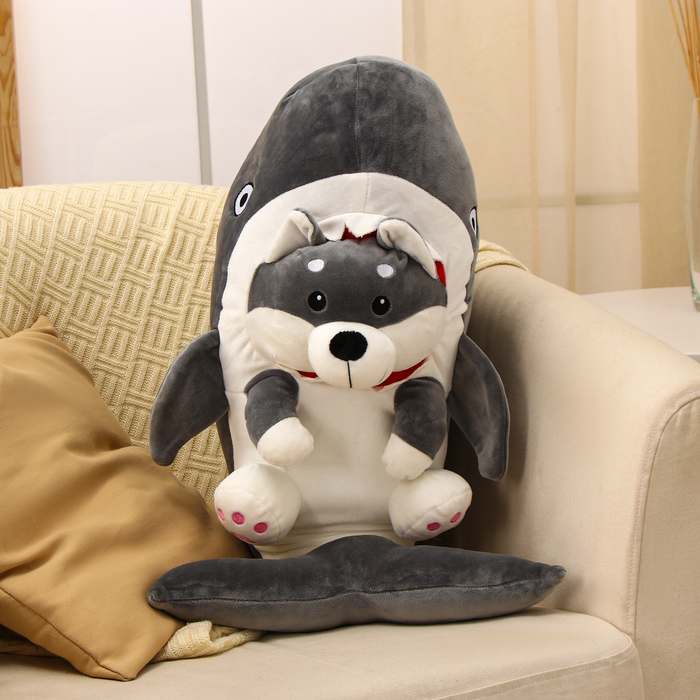 Собака-акула — это мягкая игрушка с оригинальным дизайном. Она сочетает в себе оригинальный дизайн и приятные на ощупь материалы. Игрушка выполнена в виде собаки, одетой в костюм акулы. Игрушка привлекает внимание и создаёт дома уютную атмосферу.