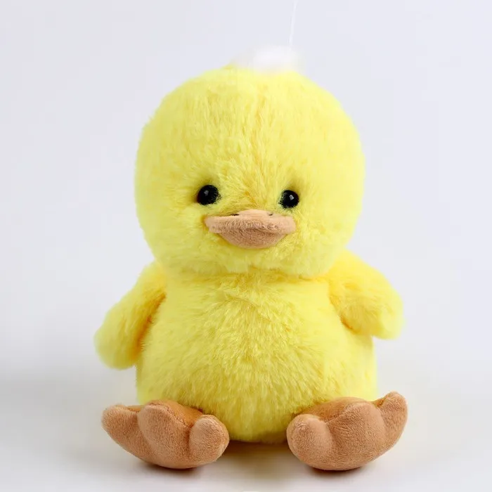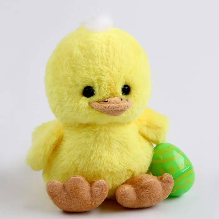 Утенок выполнен из мягкого плюша, а его лапки и клюв выполнены из пластика.