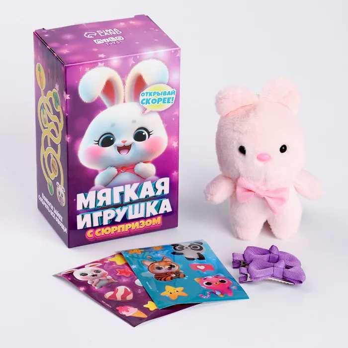 Мягкая игрушка с сюрпризом «Зайчик» — это идеальный выбор для маленьких принцесс. В комплекте с игрушкой идут наклейки и заколки для волос, что делает набор ещё более привлекательным.