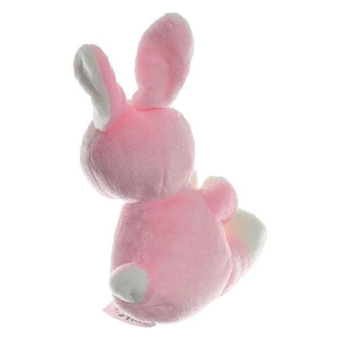 - При взаимодействии с игрушкой ребёнок услышит забавные звуки: в лапках зайчика находится элемент с гремящими при движении шариками.