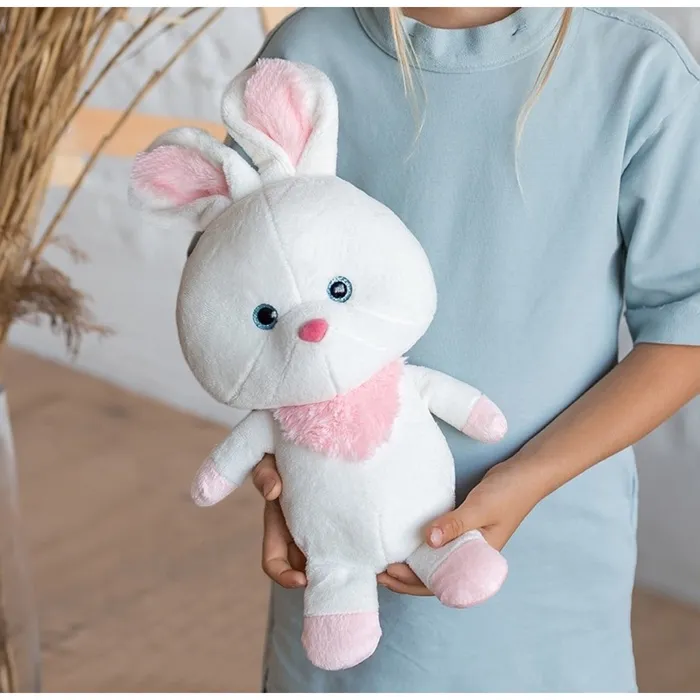 - Игрушка выполнена в виде зайца с мягкой и приятной текстурой.