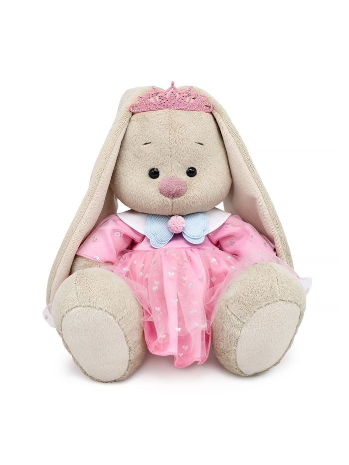 Мягкая игрушка «Зайка Ми в платье и розовой диадеме» — настоящая маленькая принцесса, готовая покорить сердце каждого. Нежное платье из фатина с блёстками и сияющая диадема создают волшебный образ, который вызывает улыбку с первого взгляда.