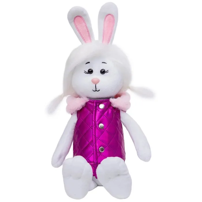 «Зайка Зефирка» очаровывает своим внешним видом. На игрушке яркая блестящая розовая жилетка с пушистым воротничком, которую можно снять. Ушки Зефирки торчат из-под волос, которые заплетены в маленькие хвостики. При желании игрушку можно использовать для обучения детей плетению косичек.