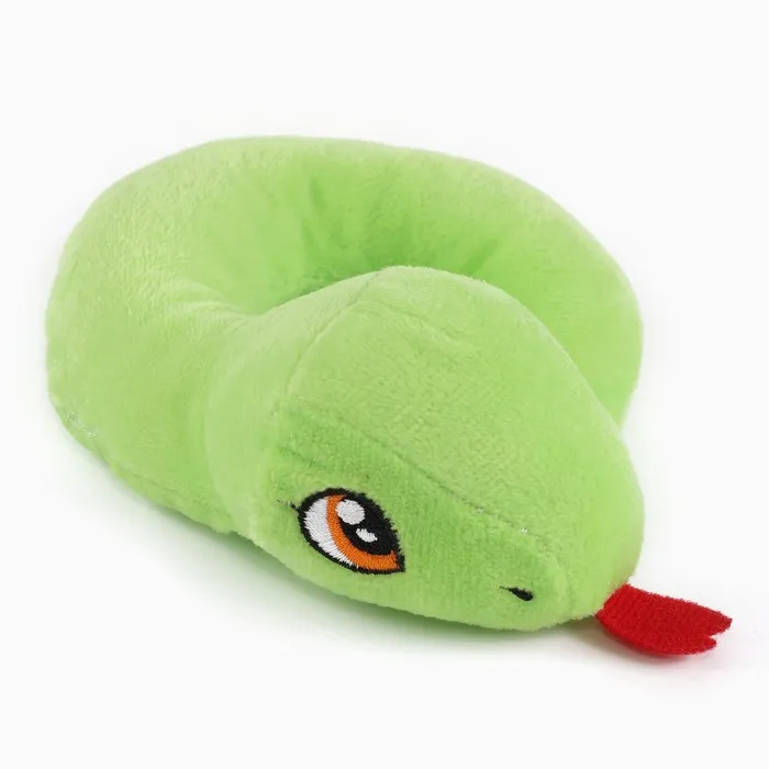Миниатюрная змейка — это мягкая игрушка высотой 12 см, выполненная из текстиля в зелёном цвете. Она станет стильным аксессуаром для декора или милым подарком, особенно в год змеи по восточному календарю.