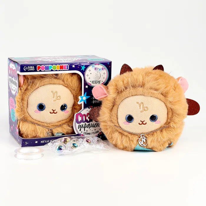 - В наборе представлены мягкая игрушка Козерог, материалы для создания украшений и кулон со знаком зодиака.