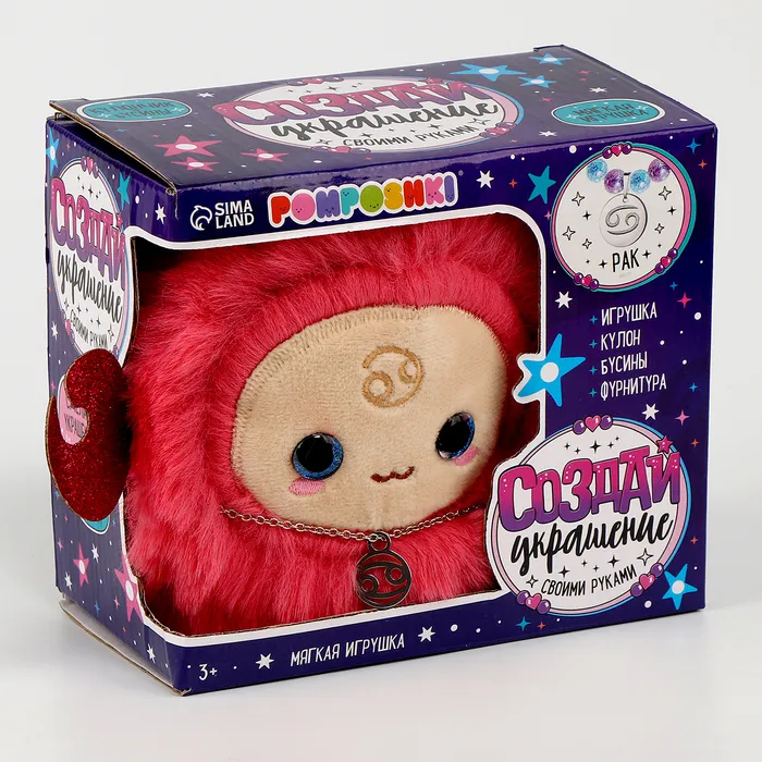 - В наборе представлены мягкая игрушка Рак, материалы для создания украшений и кулон со знаком зодиака.